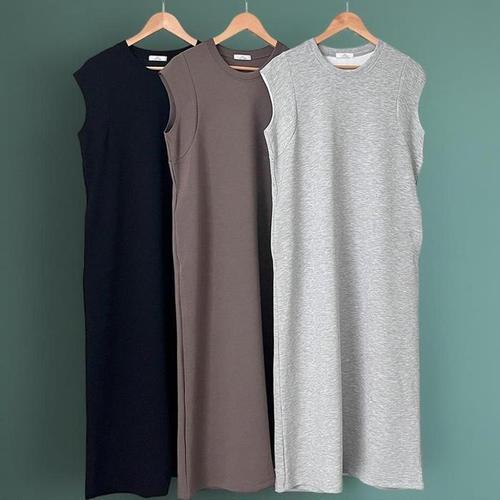 [신상오픈런]여성 슬림 스판 민소매 언발 트임 롱 원피스 (33724658)