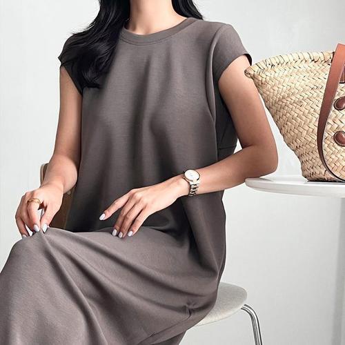 [신상오픈런]여성 여름 스판 롱원피스 캡소매 마실룩 박시핏 (39139204)