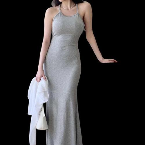 여자 여성 H라인 원피스 니트 민소매 슬림 스판 롱스커트 머메이드 나시 롱원피스 골