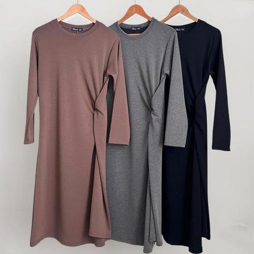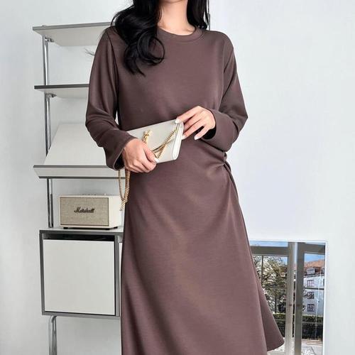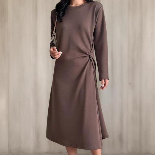 [신상오픈런]여성 심플 옆꼬임 롱 원피스 가을 스판 절개 모임룩 (41913553)