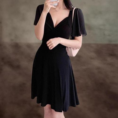 [신상오픈런]여자용 슬림핏 미니 원피스 날개프릴 스판 플레어 드레스 (40724303)