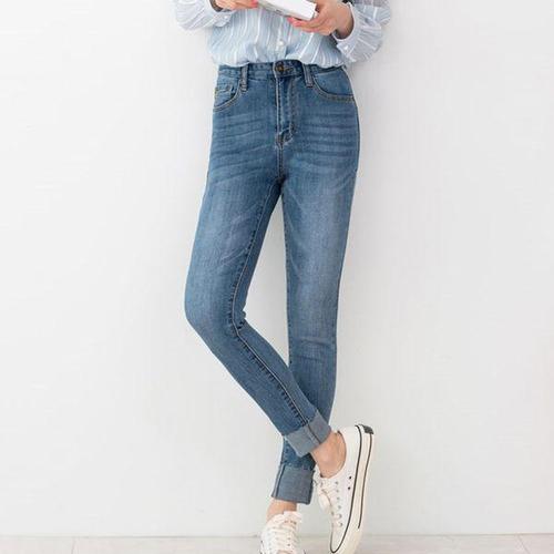 [에이치플러스몰]여성청바지 워싱 롤업 하이웨스트바지 1P 스키니 스판