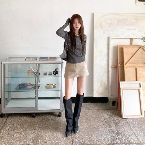 [옷자락]여자 키치무드 스터드 코튼 면 스판 치마바지