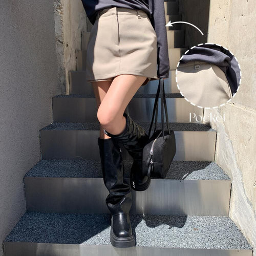 [옷자락]여성 클래식 포켓 미니 절개 스판 숏 치마바지