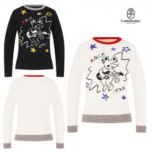 [기타]까스텔바작 여성 골프 방풍안감 스팽글자수 니트 라운드 스웨터 BGDWSW-704.
