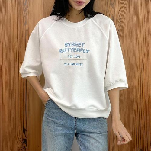 [신상오픈런]여성 라운드넥 스트릿스팽글 루즈핏 7부 티셔츠 (32326398)
