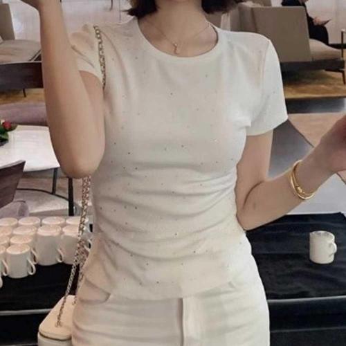 [오너클랜]인기상품 여성용 반팔 슬림핏 큐빅 스팽글 라운드넥 티셔츠 [WFJFYOE_251107]