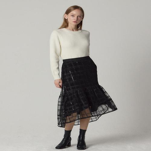 [오조크][오조크(OZOC)] 스팽글체크샤 플레어 밴딩 스커트 (택가격 85000원)