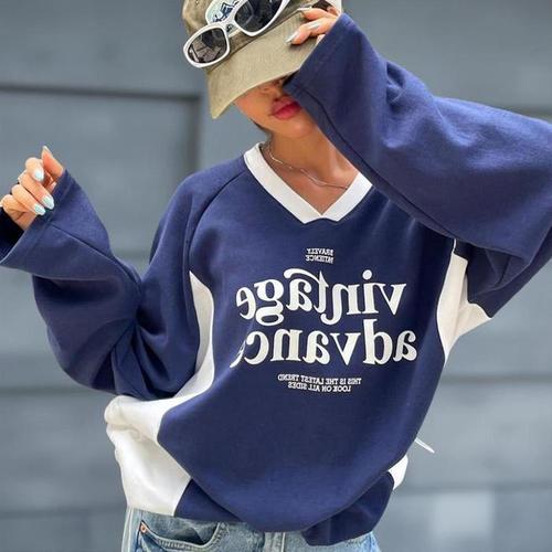 [신상오픈런]여성 브이넥 배색 스트링 맨투맨 스포티 레터링 (40855125)