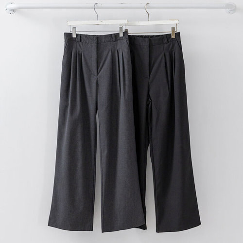 [아날로그무드]스트라이프 뒷밴딩 와이드 슬랙스 (차콜)