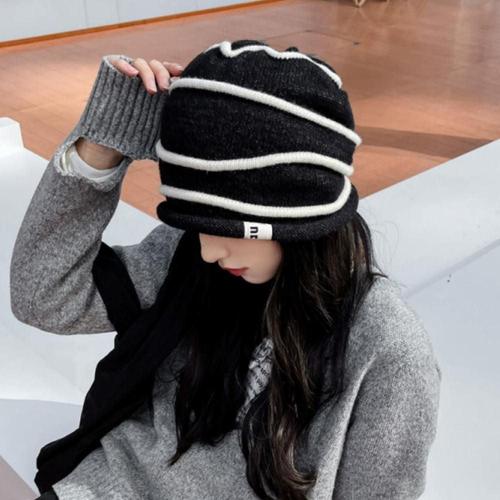 여성 겨울 스프라이프 롤업 니트 스웨터 비니 모자 WFL6XZD