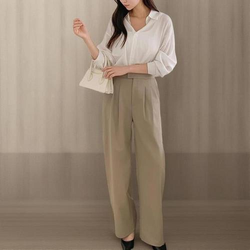 [신상오픈런]여성 출근 스타일 투핀턱 일자 슬랙스 뒷밴딩 가을 하객룩 (40855413)