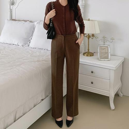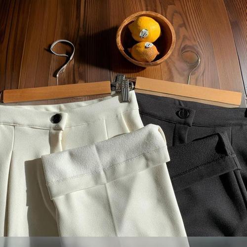 [신상오픈런]여성용 중간 기온 기모 일자핏 솔리드 컬러 핀턱 슬랙스 (32456456)