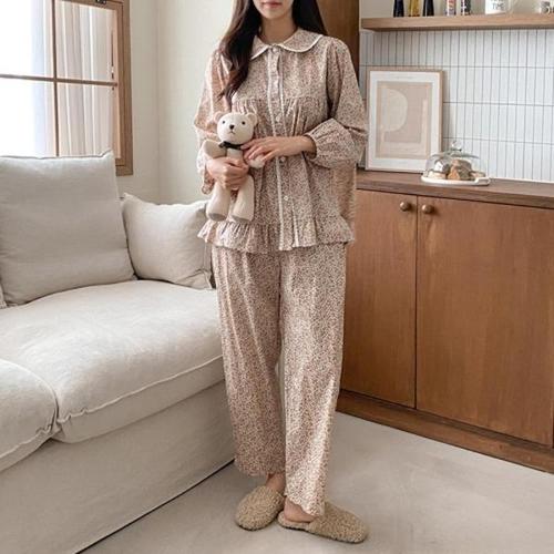 마리끄 레누보 플라워 파자마 여성 프릴 카라 잠옷세트