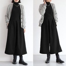 에쥬아 모직 와이드팬츠 가을 겨울 빅사이즈 치마바지 헤링본 패턴 밴딩 9부 슬랙스