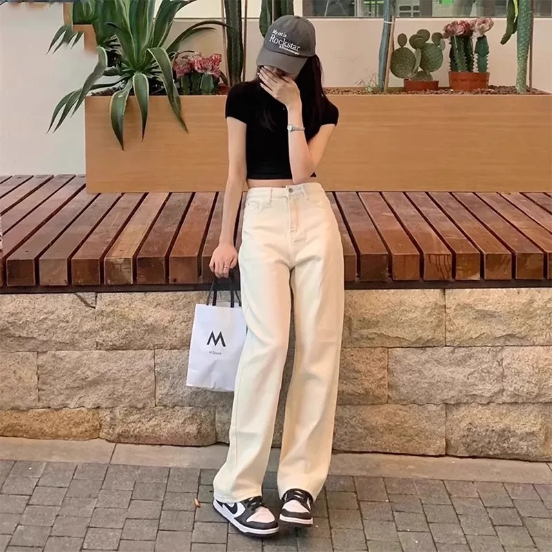 하이웨이스트 스트레이트 레그 진 여성용 드레이프 슬리밍 하이 라이즈 스키니 와이드 레그 플로어 렝스 팬츠 여름 배형 체형