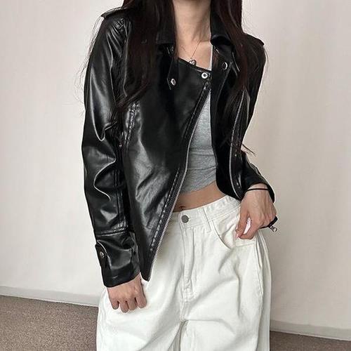 MOSAIRATION 여성 레더 자켓 봄 가을 소향풍 라이더 여성 상의 패션 슬림 인조가죽 재킷 트렌디 데일리 코트