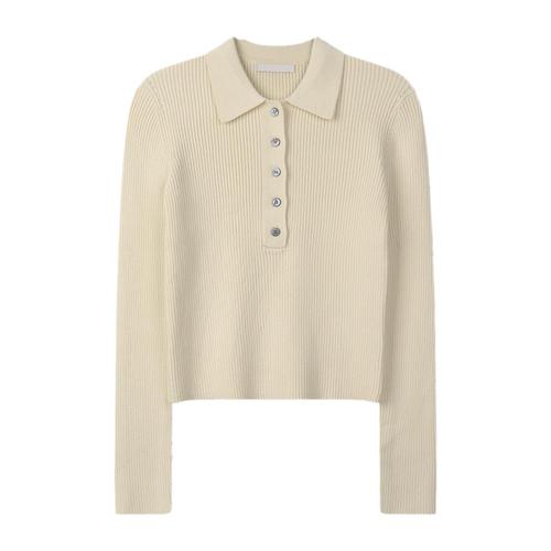 [리빌모아]여자 프리미 슬림 버튼 카라넥 골지 니트티 SGW-KN-Q052-크림