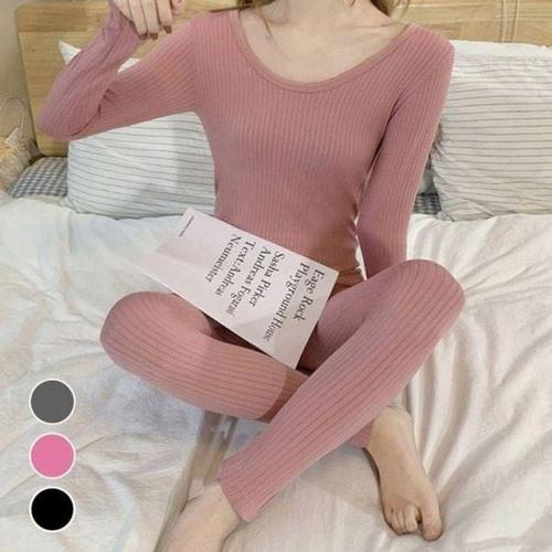[에이치플러스몰]시그니처레이디스 가벼운 니트립 슬립 내복 세트아이템