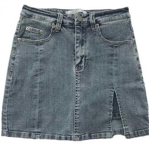 [로코엘라] 크리드 워싱 슬릿 여성 데님 스커트