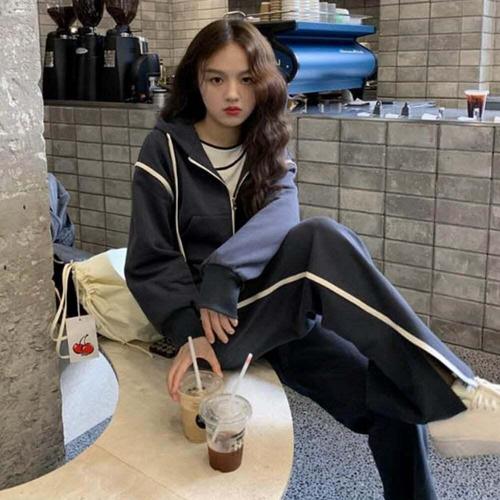 [셀럽하우스]여성 KUSC1221 바지밑단절개 후드셋업 트레이닝세트 손목시보리