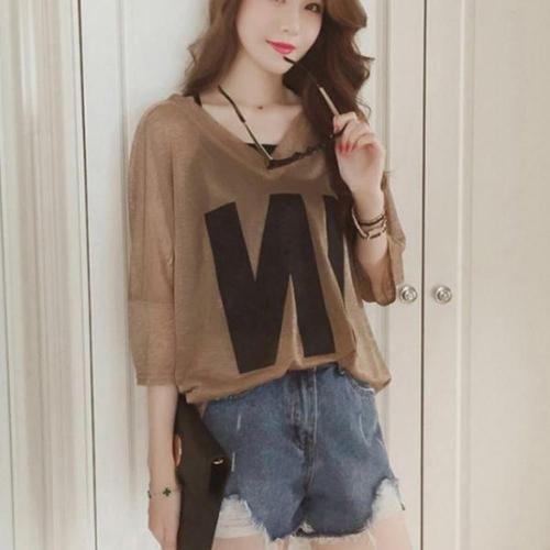 샵앤) 국산 여성 여름 시스루 반팔 니트 티셔츠 WDM-WKN-2LCBB1045