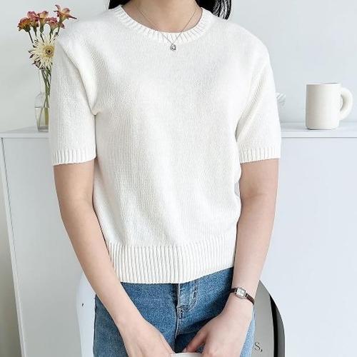 류룡 여성 베이직 반팔 반목 니트티 티셔츠