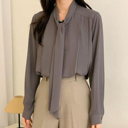 (~XXL까지) 고니덴 타이넥 시스루 블라우스 봄 가을 하객룩 오피스룩 모임룩 격식룩 빅사이즈