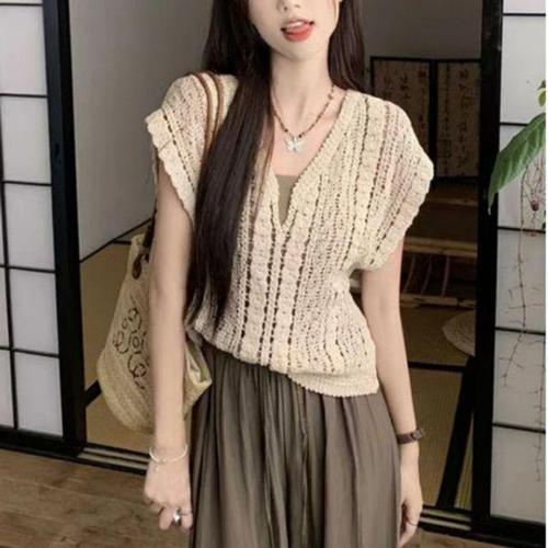 [에이치플러스몰]나뭇 잎 나시 수영복커버업 시스루니트 그물니트 망사니트 나시니트 슬리브리스 여름니..