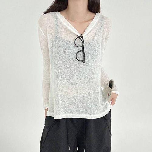 여성 티셔츠 티셔츠 커버업 시스루 긴팔티