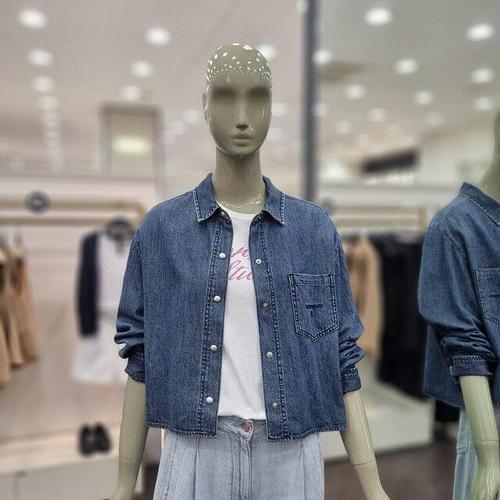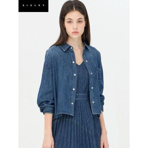 [시슬리]포켓 자수 크롭 데님 블라우스 (SAWS07441 블루)_DJ