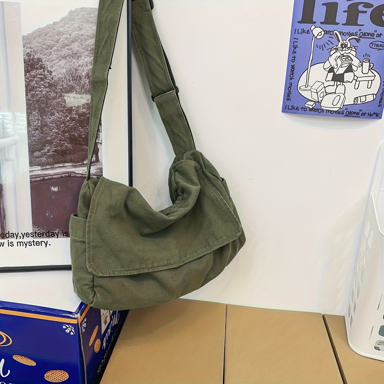 TEMU 여성용 크로스백, 캐주얼 슬라우치 스타일, 예술적인 대학생 교실 가방, 레저 싱글숄더 메신저백