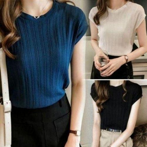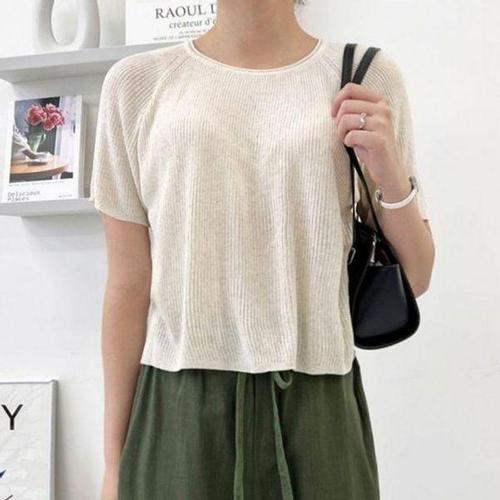[에이치플러스몰]여자 인기 크롭 여름 반팔 감성 니트 1P 시원한 라운