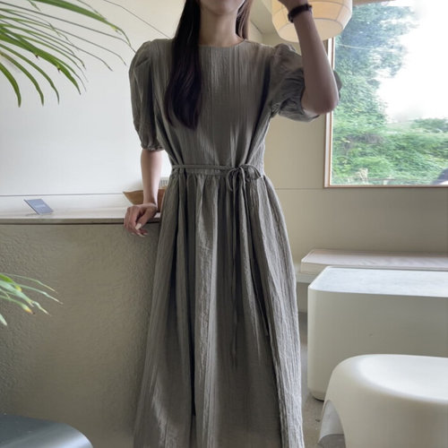 [ab.f.z]AFZ3QO32/여름 허리 스트링 바스락 시원한 카라 롱 원피스_IC