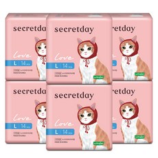 시크릿데이 러브 생리대 날개형, 대형, 14개입, 6개