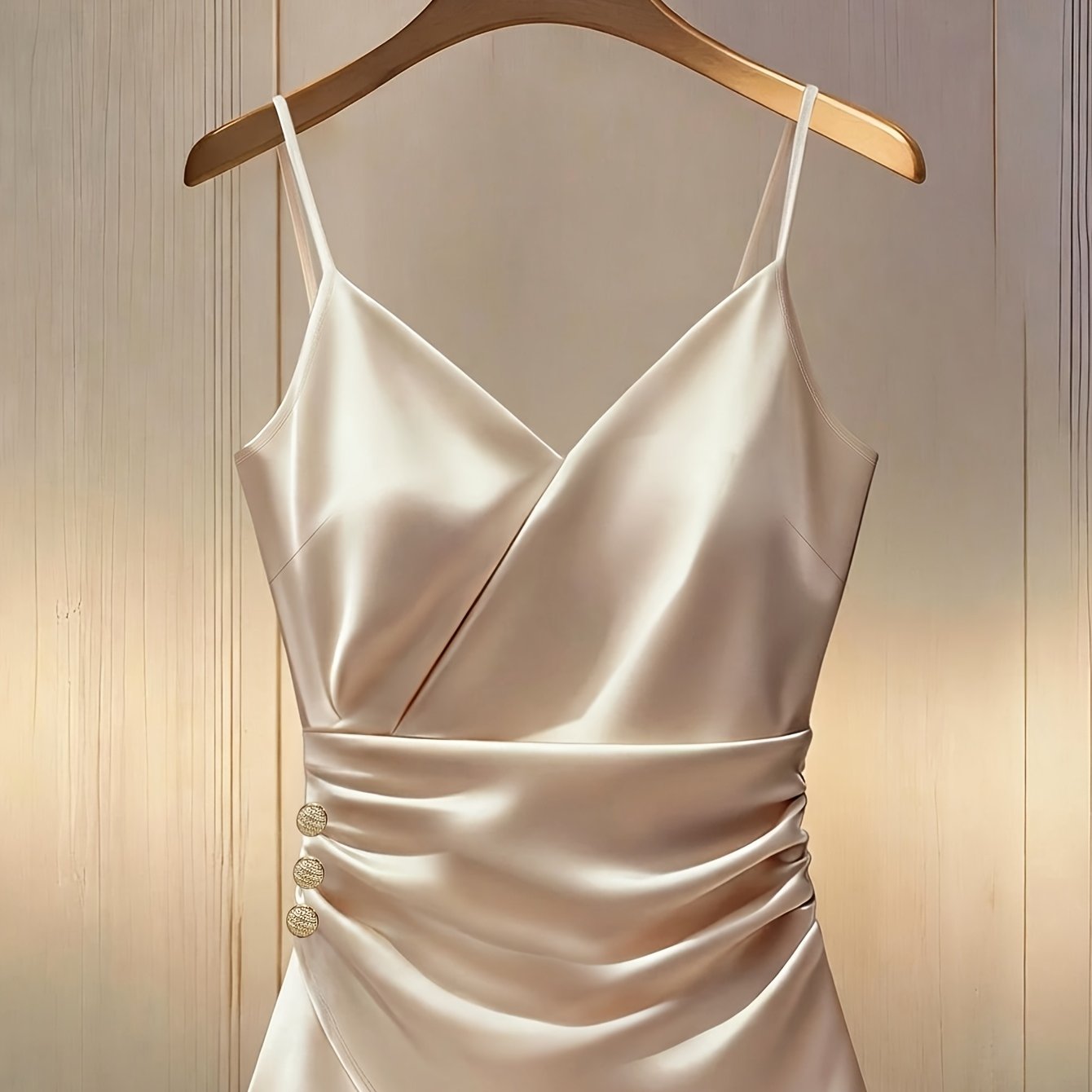 TEMU 여성용 봄/여름 섹시한 얇은 스트랩 러플 트림 메탈 버클 장식 슬림핏 새틴 캐미솔 탑, 우아한 샴페인 색상 슬립 드레스, 정장용 상의