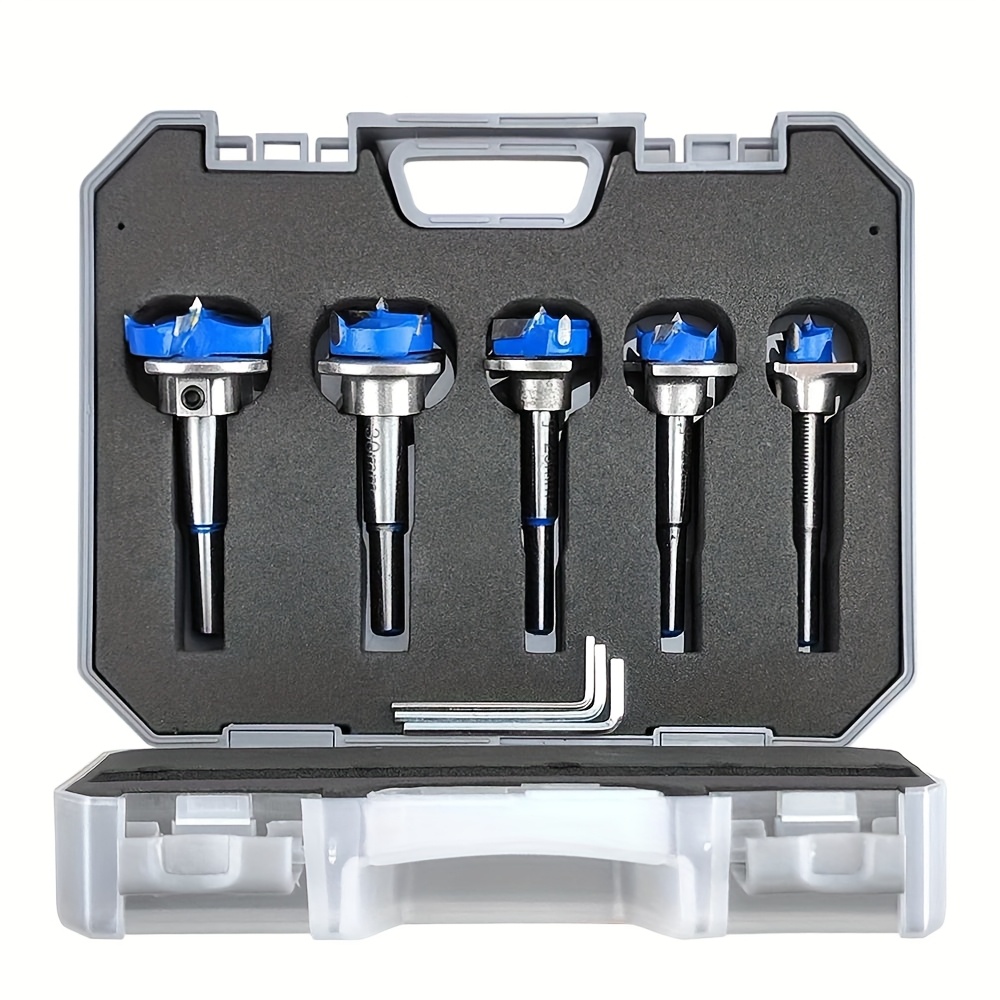 TEMU 카바이드 팁 포함 5피스 헤비듀티 카본 스틸 포스트너 드릴 비트 세트 (15-35mm 홀쏘 커터 키트) - 목공, 힌지 설치용 전문가용 보관 케이스 포함
