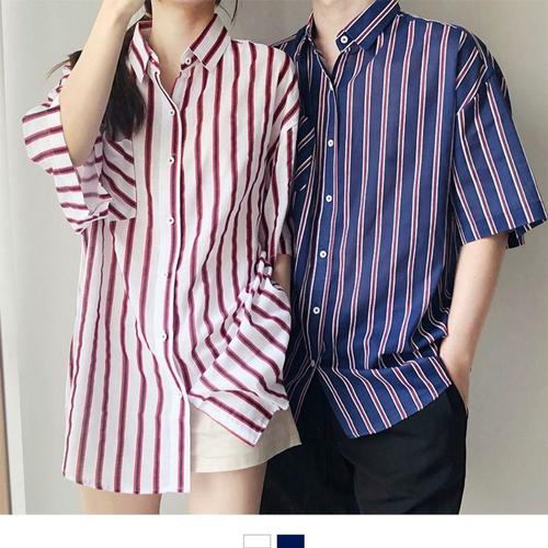 스트라이프 오버핏셔프 비치남방 신혼여행 오버핏 (WFHX7NQ)