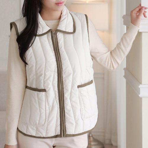 여성 배색라인 경량 패딩조끼 따뜻한 실내조끼 사무실 조끼 WFL7VXJ