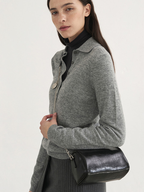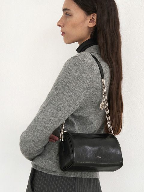 [앤오즈] 체인 숄더 미니 보스턴 레더백_블랙_실버_다크실버_아이보리_브라운_메탈릭_올블랙