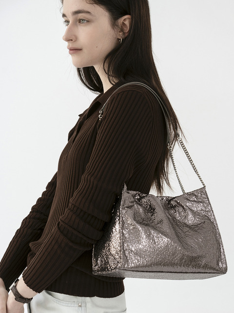 [앤오즈] 토트 숄더 체인 레더 미니 가죽 버킷백_블랙_아이보리_다크실버_실버_브라운_버건디