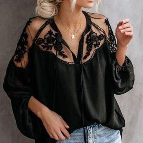 시스루 블라우스 루즈핏 실크 로미홀리 썸시스루 WFL8P73