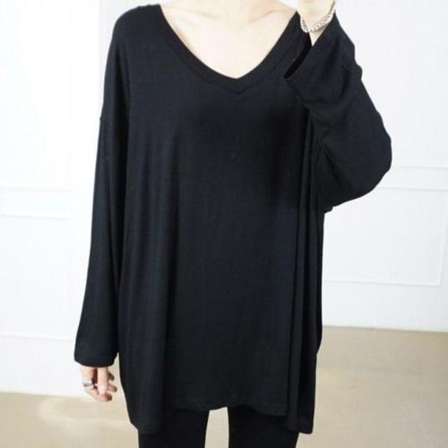 [의류] 루즈핏 여성 브이넥 긴팔 무지 실키 티셔츠 빅사이즈