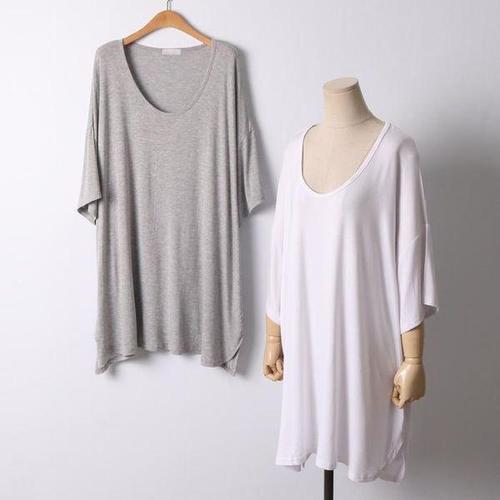 [셀러허브_여성트랜드패션]빅사이즈 602 실키딥유넥언발티셔츠 DRAI694