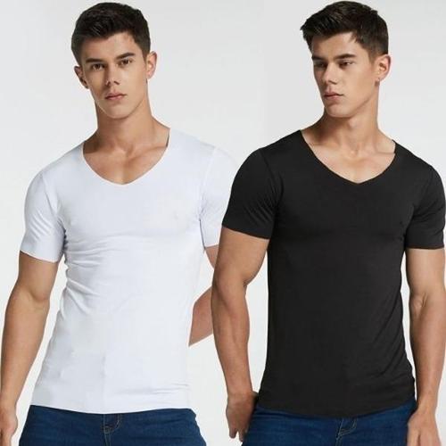 [다잇템][다잇템] 남자 SS 심리스 아이스 반소매 V넥 티셔츠_13913632_588872
