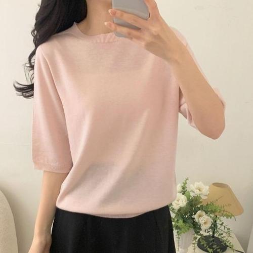 [다잇템][다잇템] 여자 라운드 반팔니트 세미시스루 SS 울 심리스 니트_24432958_588872