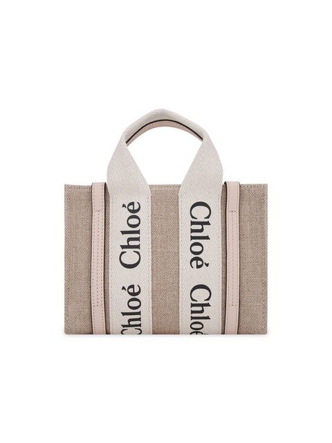 끌로에 린넨 우디 노스 사우스 미니 토트백 시멘트 핑크 CHC24AP243I266J5