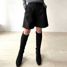 네모엔룩 하프버뮤다 여성 겨울 도톰 울혼방 허리 앞핀턱 뒷밴딩 사이드포켓 모직 하프 팬츠