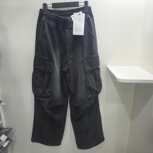 [써드케이](남녀공용)와이드 카텐터 데님 바지MP6DU163-블랙_CJ