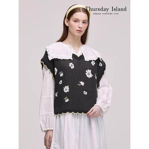 [써스데이아일랜드]플라워 자카드 브이넥 베스트(T242MVT133W)